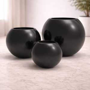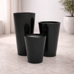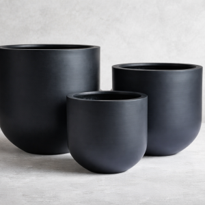 3’lü Siyah Fiber Saksı Seti – Modern Dekoratif İç Mekan Saksıları