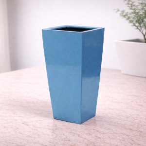 Dekoratif Fiber Saksı – Mavi Kare Yüksek Model