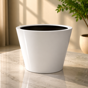 Beyaz Konik Fiber Saksı – Modern Dekoratif İç Mekan Saksısı