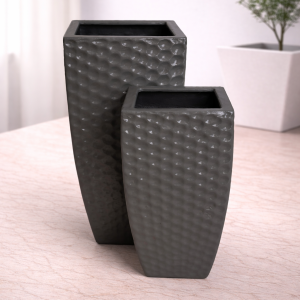 Dekoratif Fiber Saksı – Dikdörtgen Siyah Saksı Modeli