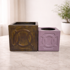 Desenli Fiber Saksı – Dekoratif Kare Modern Saksı