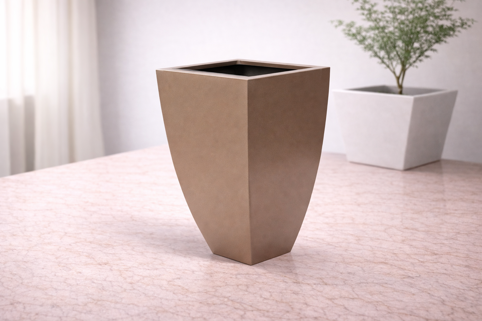 Modern Bej Kare Fiber Saksı – Şık Dekoratif Saksı Modeli