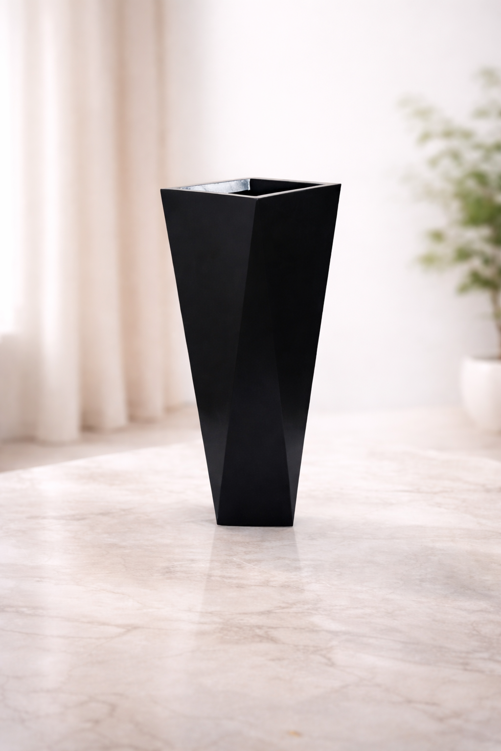 fiber saksı, mat siyah saksı, modern saksı, büyük saksı, dekoratif saksı, fiberglass saksı, dış mekan saksı, iç mekan saksı, uzun ömürlü saksı