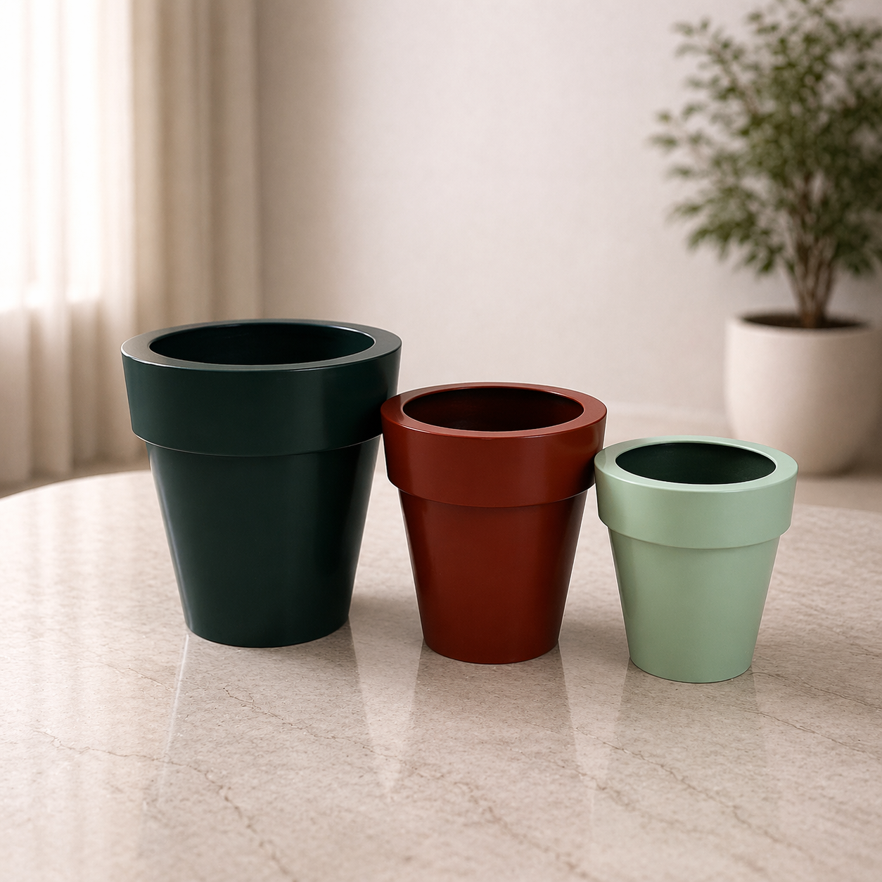Fiber saksılar, klasik saksılara göre çok daha hafif, dayanıklı ve uzun ömürlüdür. Modern tasarımı sayesinde dekorasyonunuzu tamamlar, mekâna estetik ve prestij kazandırır.
