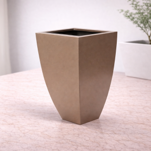 Modern Bej Kare Fiber Saksı – Şık Dekoratif Saksı Modeli